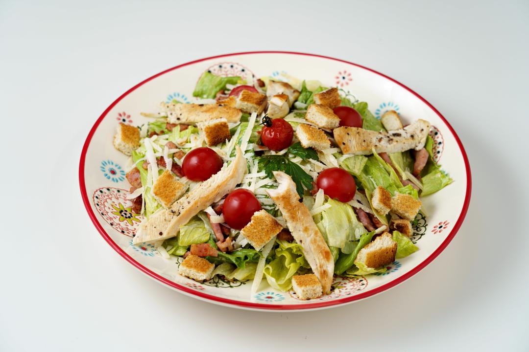 (salata iceberg,bacon, piept de pui, rosii chery, parmezan, crutoane, dressing ansoa)